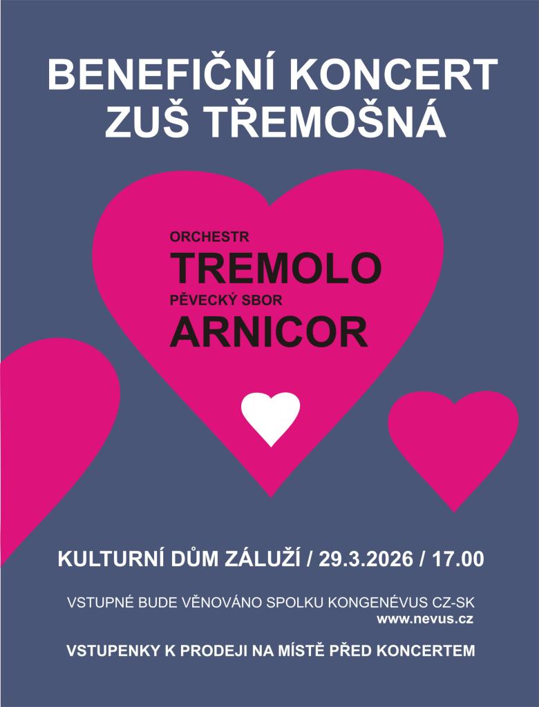 Srdečně vás všechny zveme na BENEFIČNÍ KONCERT orchestru Tremolo a pěveckého sboru Arnicor!